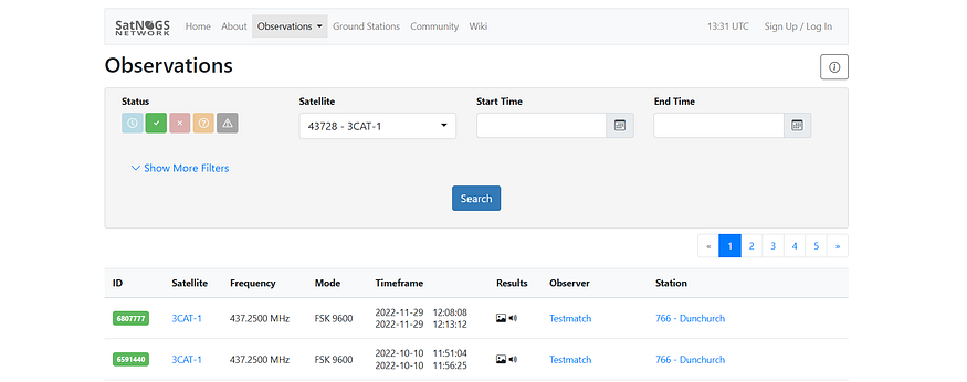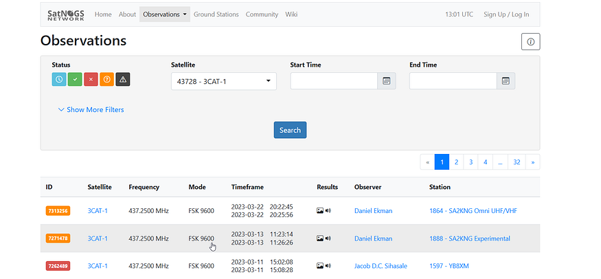 going to https://network.satnogs.org/observations websites to see what observations there and using the name we got
