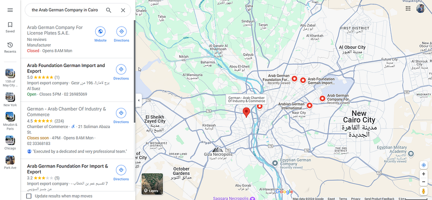 Our mission is clear and the situation we are in is pretty simple first let’s find what company they meant and where it’s located. Searching Google with the same quote “the Arab German Company in Cairo” we got plenty