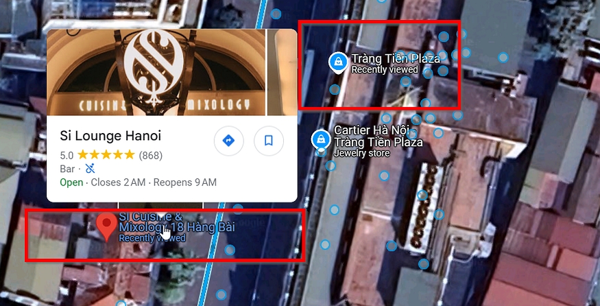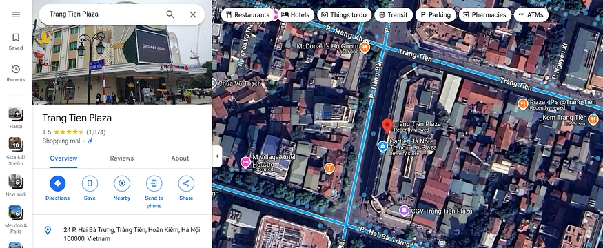 We can see in the provided image a huge building with the title “Trang Tien Plaza” heading to Google Maps and hitting the street view to locate the exact angel